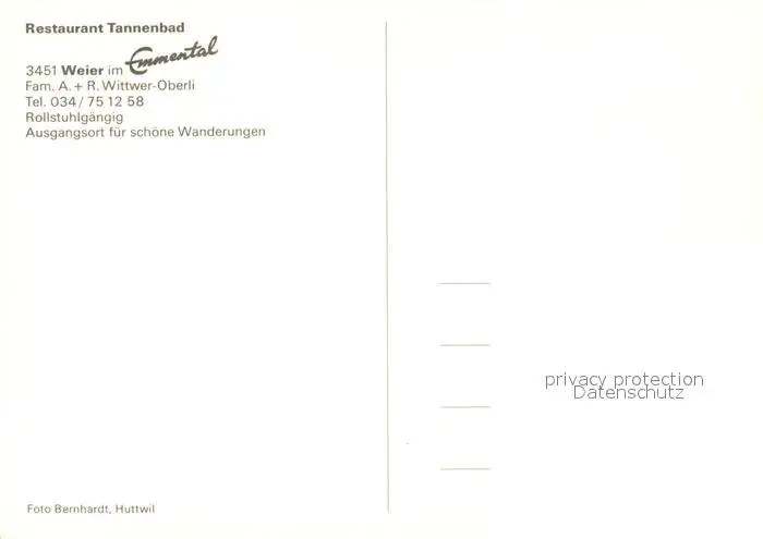 Weier_BE Restaurant Tannenbad Weier_BE postalisch nicht gelaufen nach 1965 Erhaltung siehe scans [NatalD47] NataID47