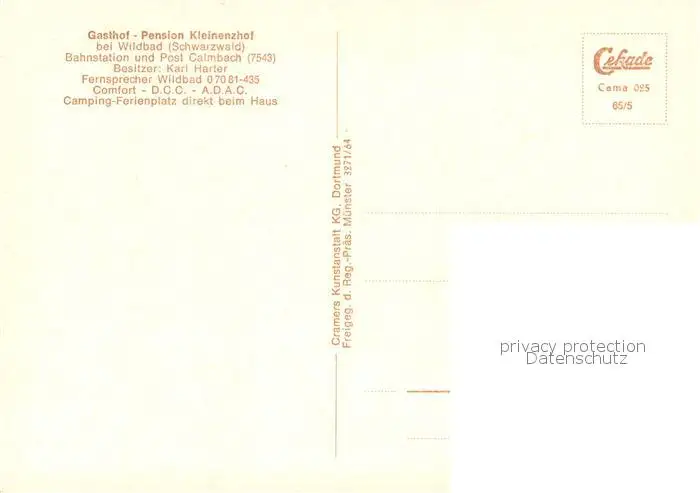 Wildbad_Schwarzwald Gasthof Pension Kleinenzhof Wildbad_Schwarzwald postalisch nicht gelaufen nach 1965 Fliegeraufnahme Erhaltung siehe scans [WerneD78] Fliegeraufnahme WernPID7