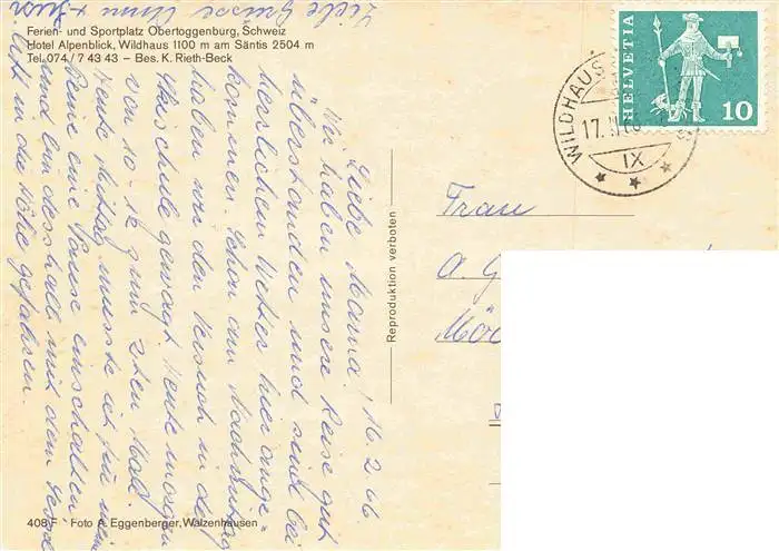 Wildhaus__SG Hotel Alpenblick Café Conditorei postalisch gelaufen 1966 Erhaltung siehe scans [FriedD77] Frierer