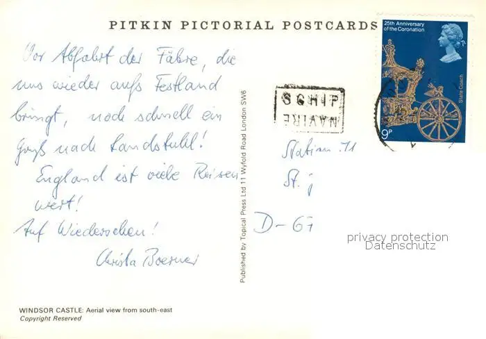 Windsor_Castle Aerial view from south east Windsor_Castle postalisch gelaufen nach 1965 Erhaltung siehe scans [FriedD77] Frierer