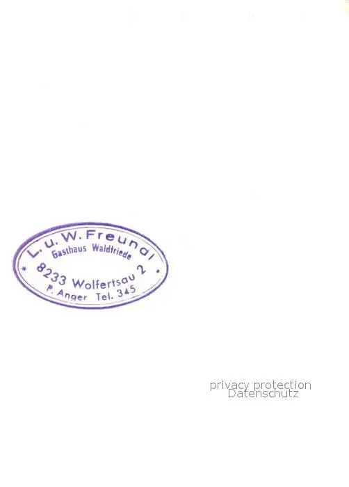 Wolfertsau_Anger Gasthaus Waldfriede Wolfertsau Anger postalisch nicht gelaufen 1921-1965 Keine Postkarte (siehe scan) Erhaltung siehe scans [FriedD77] Keine Postkarte (siehe scan) Frierer