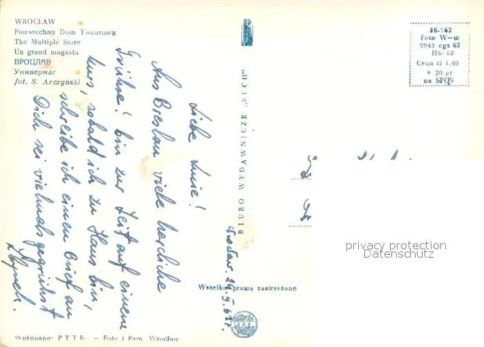 Wroclaw Multiple Store Wroclaw postalisch nicht gelaufen 1963 Erhaltung siehe scans [FriedD77] Frierer