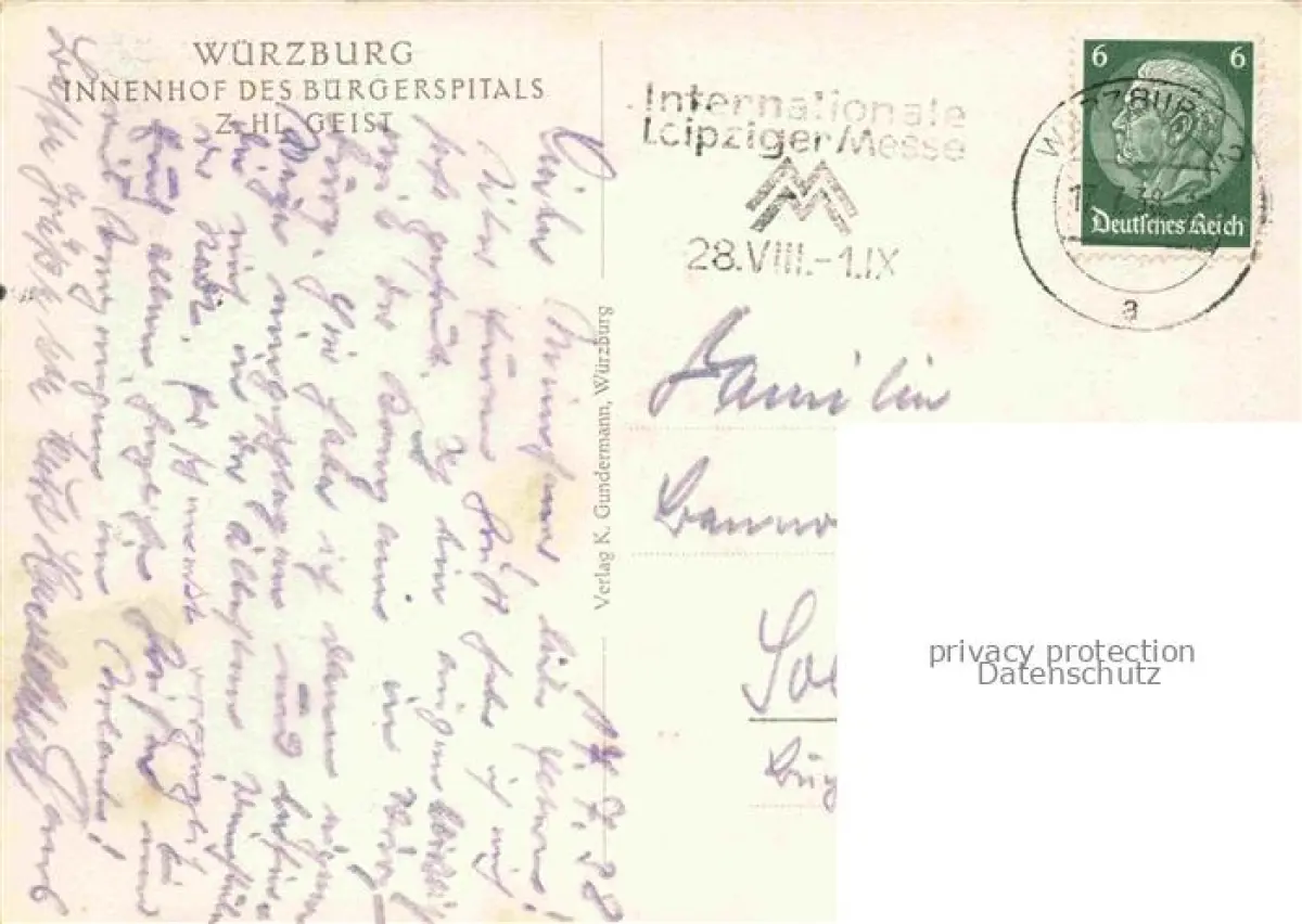 alte Postkarte WueRZBURG Bayern Innenhof des Buergerspitals Zum Heiligen Geist postalisch gelaufen Erhaltung siehe scans [FriedD77]