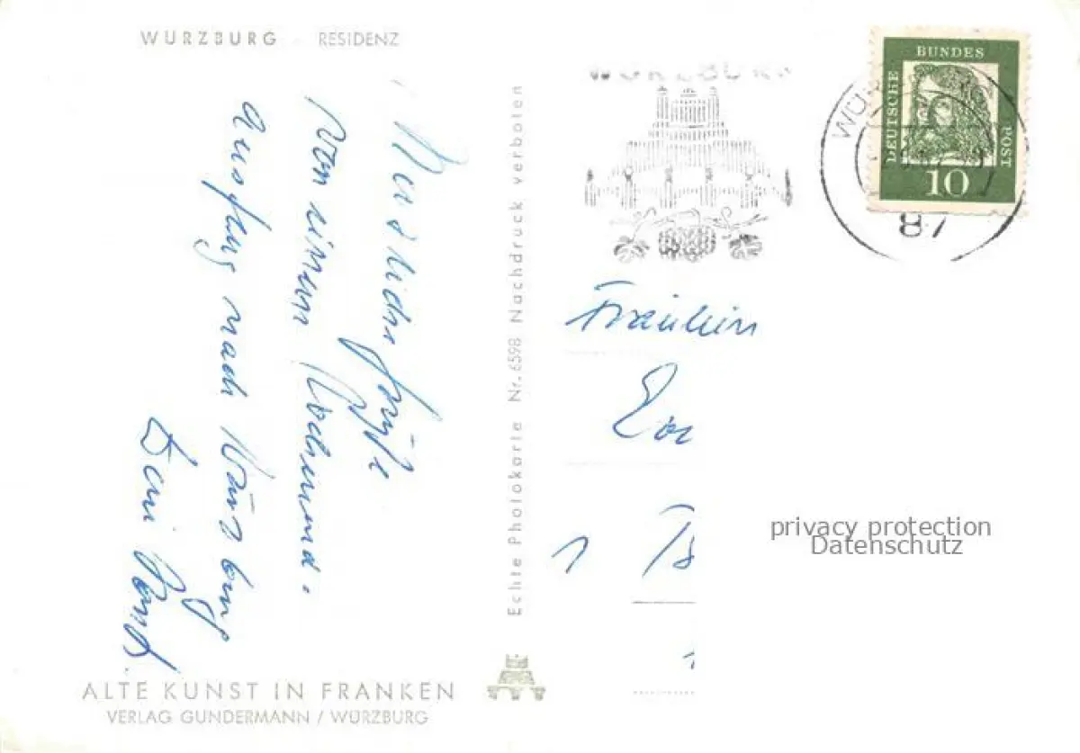 alte Postkarte WueRZBURG Bayern Residenz postalisch gelaufen Fliegeraufnahme Erhaltung siehe scans [FriedD77]