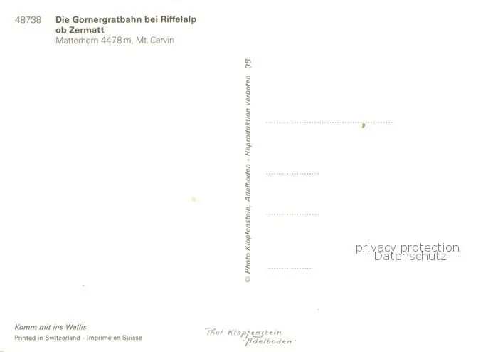 Zahnradbahn Gornergratbahn bei Riffelalp ob Zermatt postalisch nicht gelaufen nach 1965 Erhaltung siehe scans [IrynaD87] Iryn PID