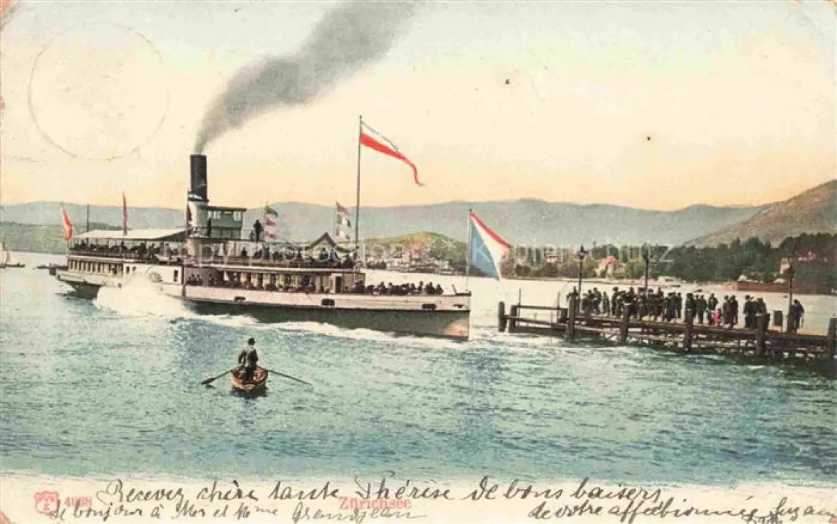 alte Postkarte ZueRICH ZH Zuerichsee Anleger Dampfer Fahrtgastschiff postalisch gelaufen Erhaltung siehe scans [FriedD77]
