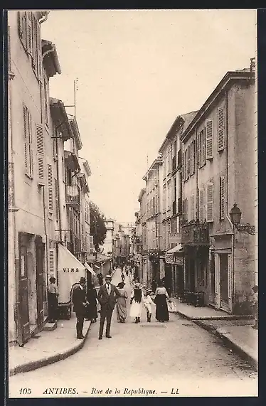 AK Antibes, Rue de la République animée avec passants et bâtiments historiques