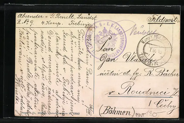 gelaufen 1915, Eckknick links oben, guter Zustand