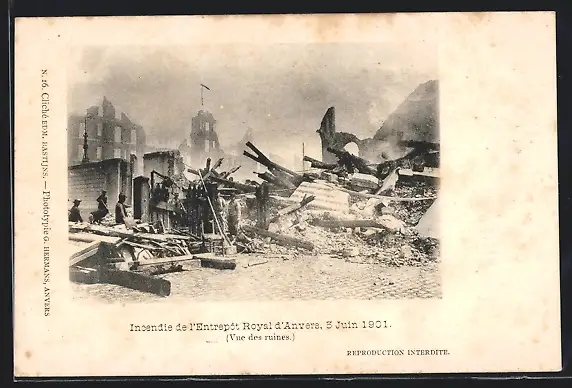 AK Anvers, Incendie de l`Entrepot Royal, 5 Juin 1901, Vue des ruines