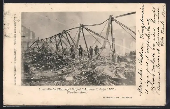 AK Anvers, L`Entrepot Royal d`Anvers apres l`Incendie 1901, Vue des ruines