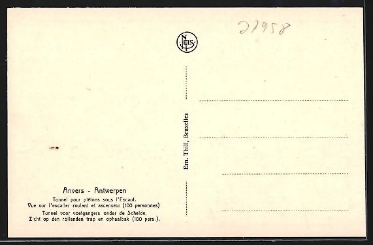 AK Anvers, Tunnel pour piétons sous l`Escaut