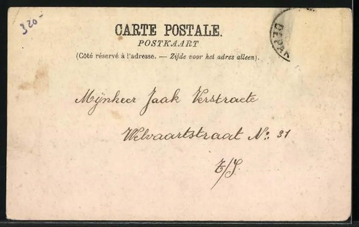 alte Ansichtskarte, gelaufen, Briefmarke entfernt, guter Zustand