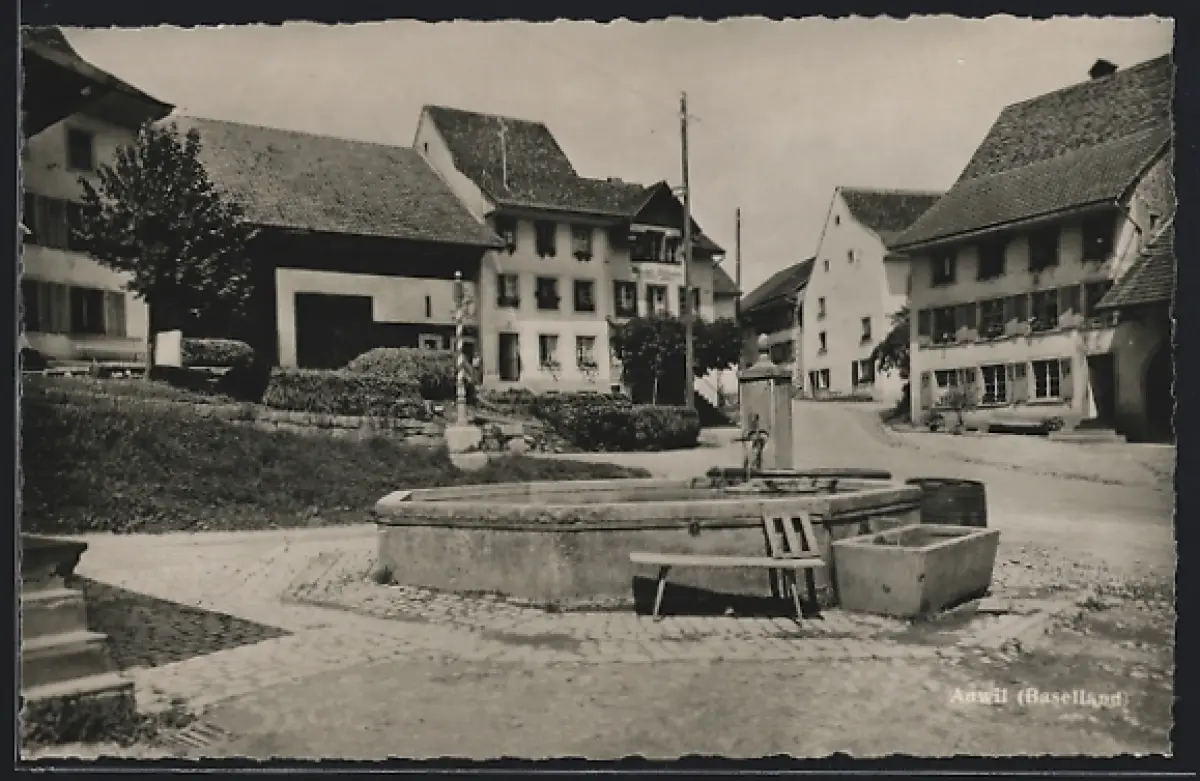 AK Anwil /Baselland, Brunnenplatz mit Gasthof Reblauben Spiess-Jenny