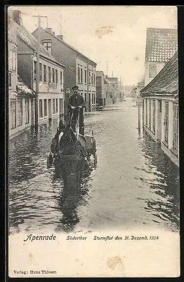 AK Apenrade, Sturmflut am 31. Dezember 1904, Süderthor
