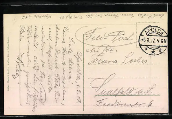 alte Ansichtskarte, gelaufen 1917 als Feldpost, guter Zustand