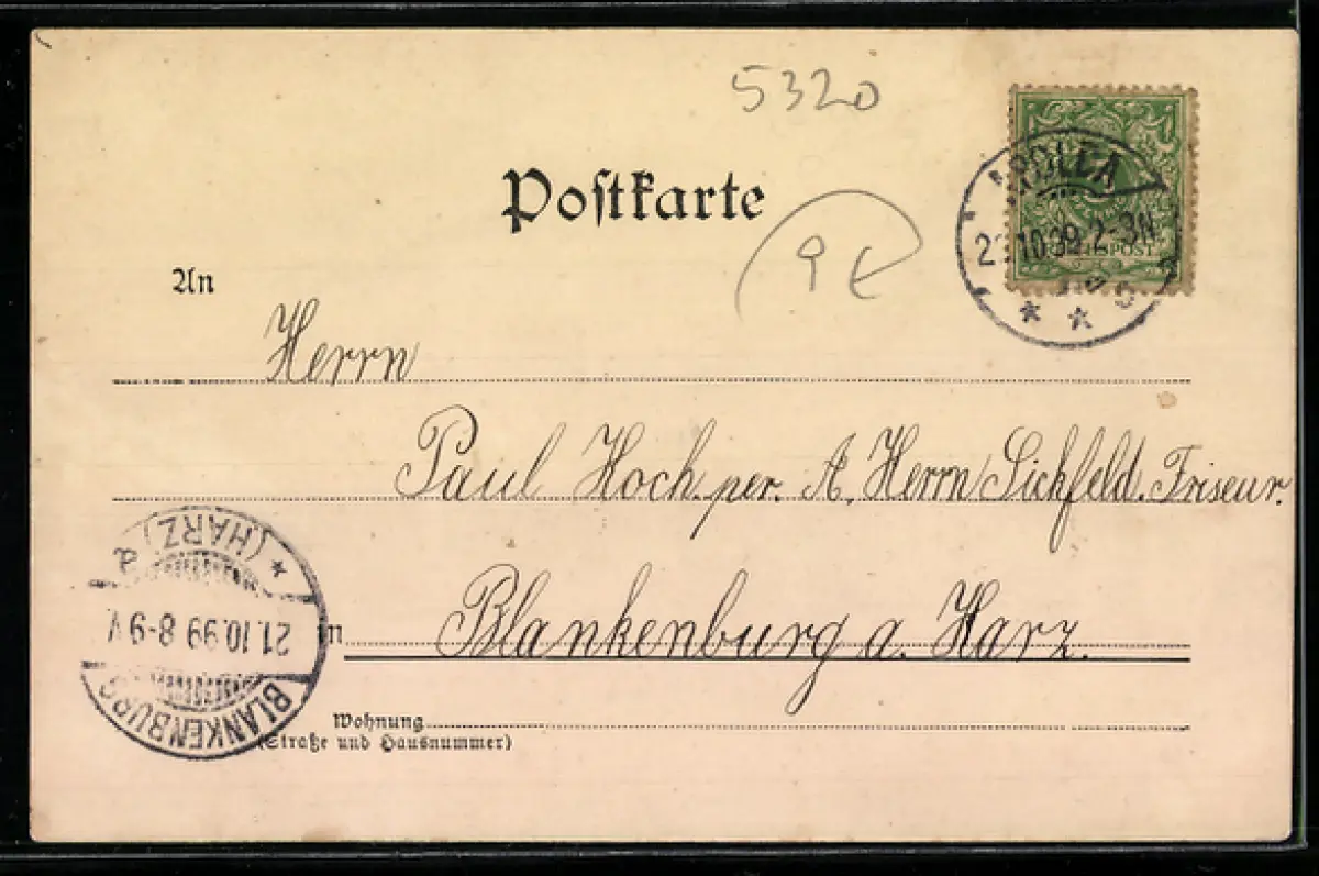 alte Ansichtskarte, gelaufen 1899, guter Zustand