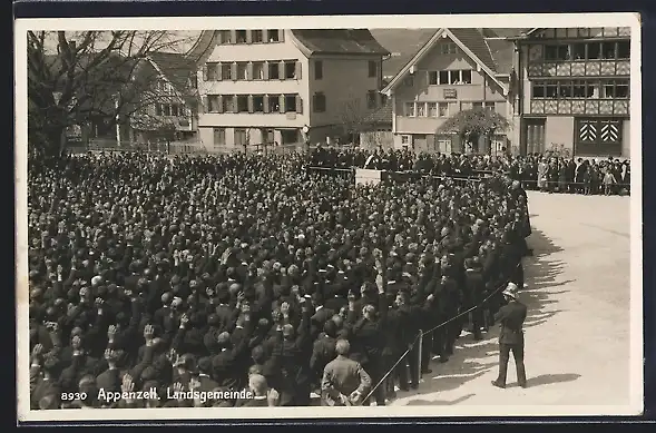 AK Appenzell, Landsgemeinde mit Blick auf Häuser