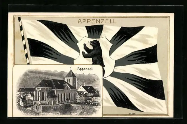 AK Appenzell, Ortspartie mit Kirche auf Appenzeller Fahne