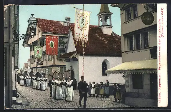 AK Appenzell, Prozession in Höhe der Abtskapelle