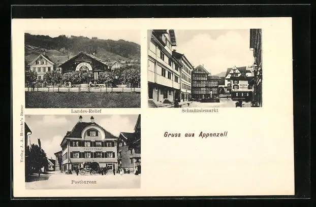 AK Appenzell, Schmäuslemarkt, Postbureau, Landes-Relief