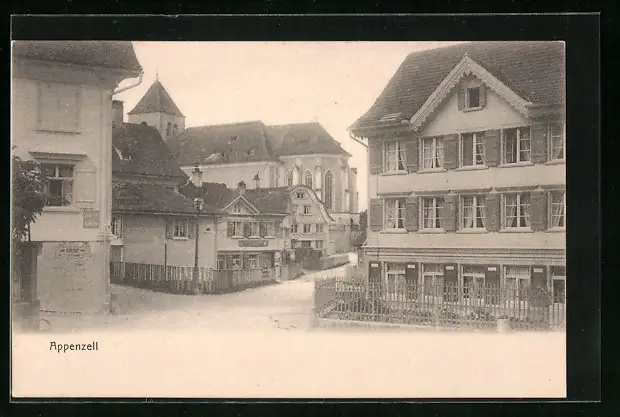 AK Appenzell, Strassenpartie mit Geschäft und Kirche