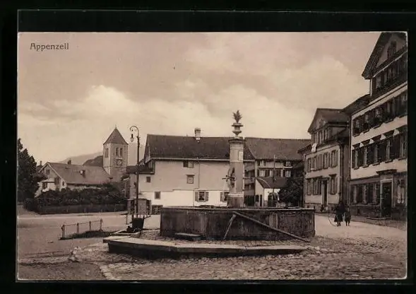 AK Appenzell, Strassenpartie mit Kirche und Brunnen