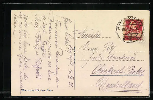 alte Ansichtskarte, gelaufen 1931, Briefmarke tw. entfernt, guter Zustand