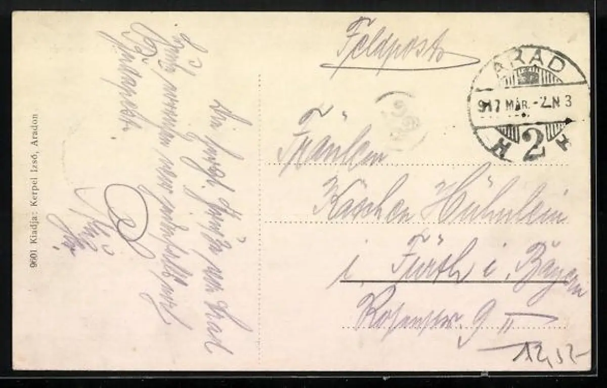 gelaufen 1917, Eckknicke li. oben, guter Zustand