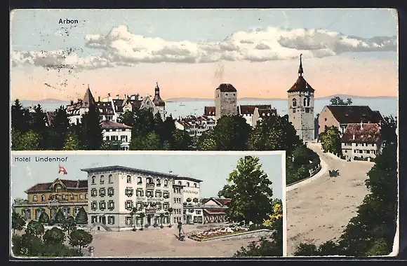 AK Arbon, Ortsansicht mit Kirche, Hotel Lindenhof