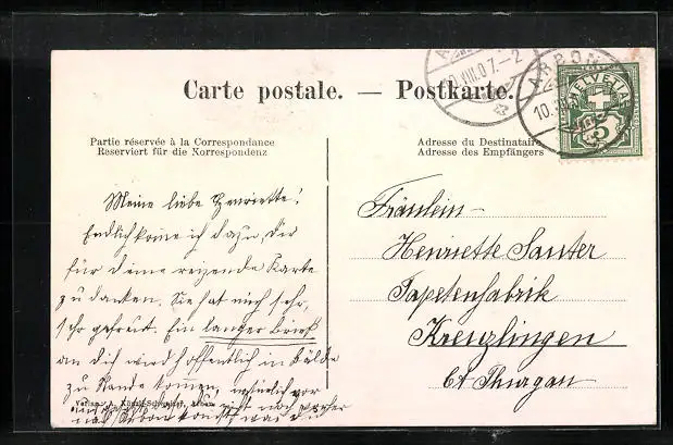 gelaufen 1907, Eckknick li. unten, guter Zustand