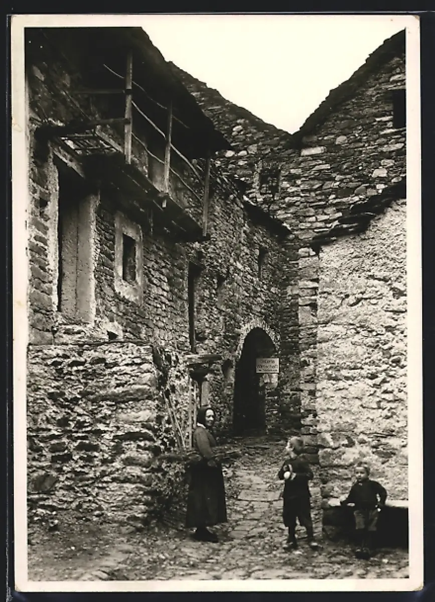 AK Arcegno, Alte Häuser und Frau mit Kindern