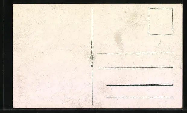 Personenbezogene Daten auf der Rückseite der Karte wurden durch blauen Textmarker unkenntlich gemacht. Die blauen Stellen sind auf die Vorderseite durchgeweicht und wirken sich negativ auf das Postkartenfoto aus
