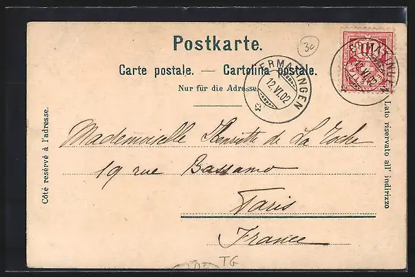 alte Ansichtskarte, gelaufen 1902, guter Zustand