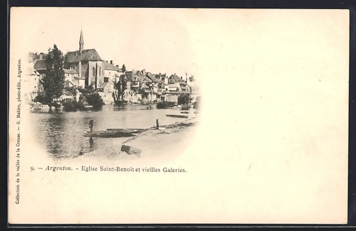 AK Argenton, Église Saint-Benoit et vieilles Galeries