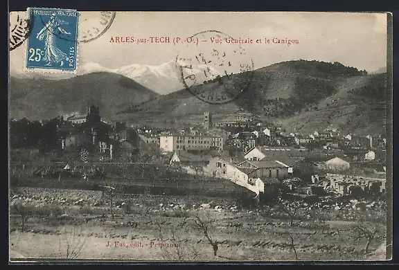 AK Arles-sur-Tech, Vue générale et le Canigou