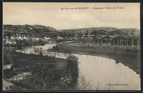 AK Armes, Vallée de l`Yonne avec vue sur la rivière et les collines environnantes