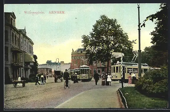 AK Arnhem, Strassenbahn auf dem Willemsplein