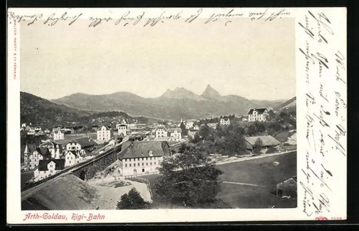AK Arth-Goldau, Rigi-Bahn mit Bergpanorama