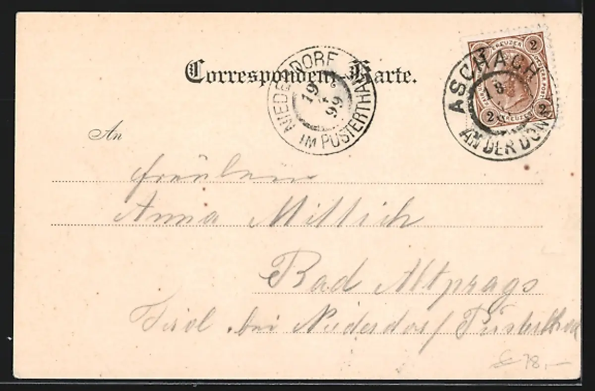 alte Ansichtskarte, gelaufen 1899, Stempelspur, guter Zustand
