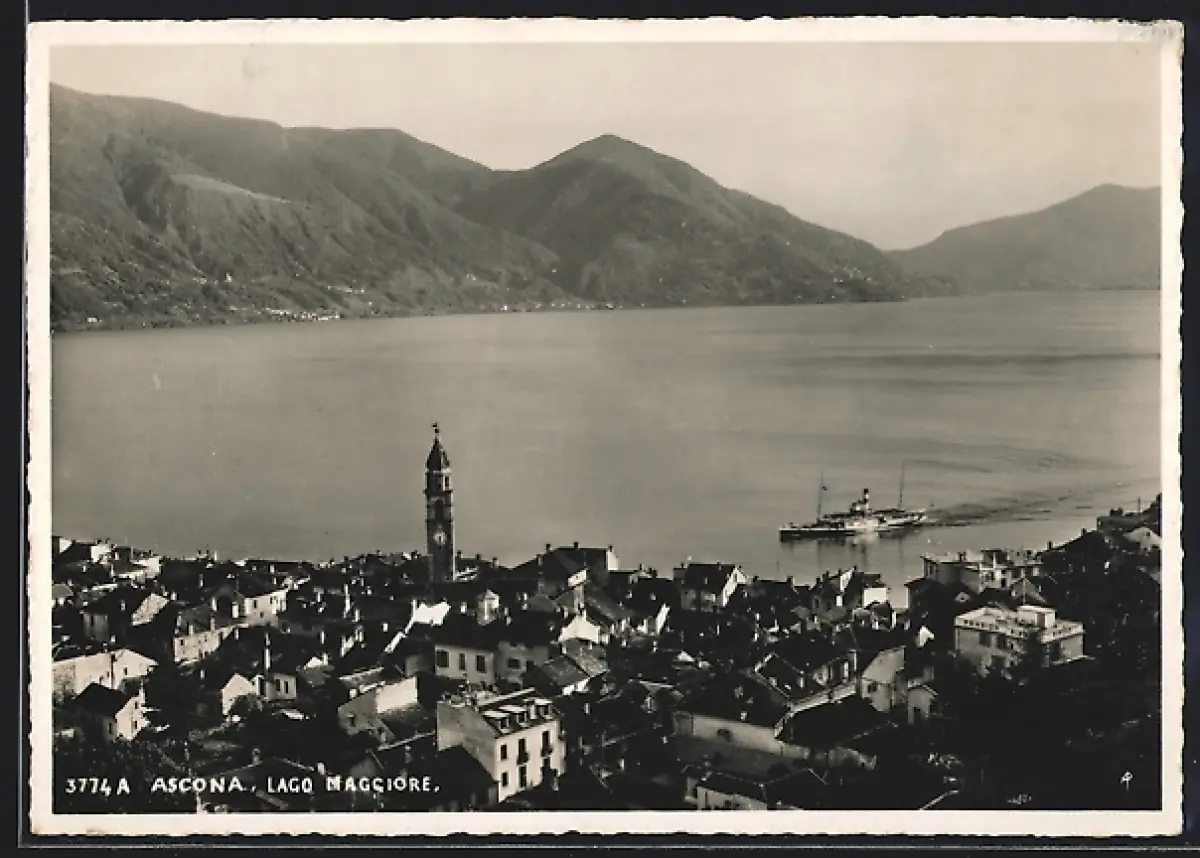 AK Ascona /Lago Maggiore, Panorama mit Bergen