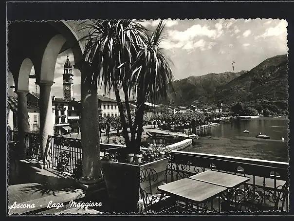 AK Ascona /Lago Maggiore, Teilansicht mit Seeblick von einer Terrasse aus