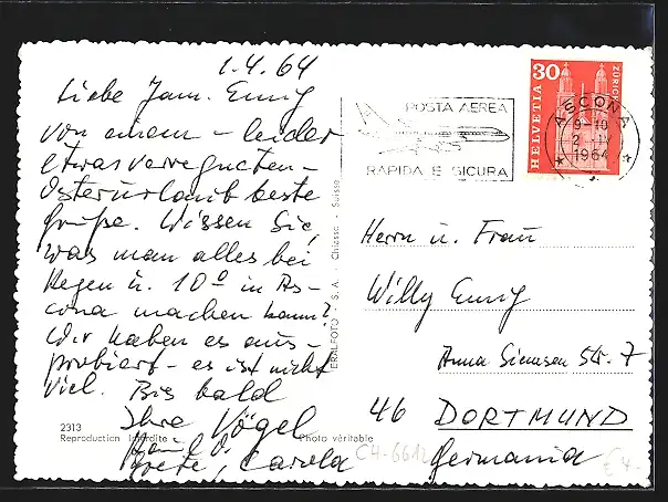 alte Ansichtskarte, gelaufen 1964, guter Zustand