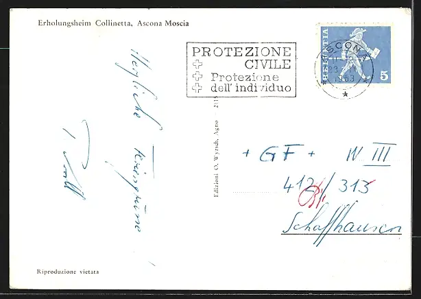 AK Ascona Moscia, Das Erholungsheim Collinetta aus der Vogelschau
