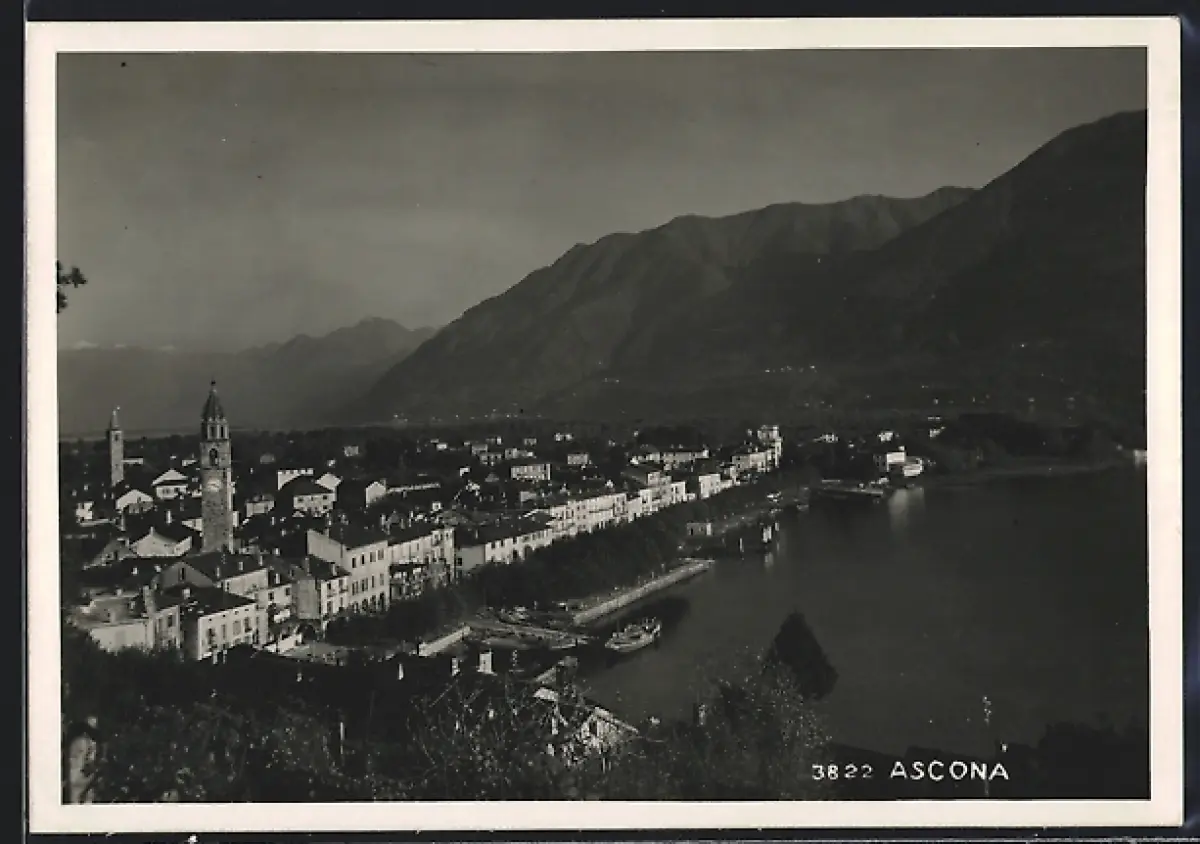 AK Ascona, Panorama mit Bergen
