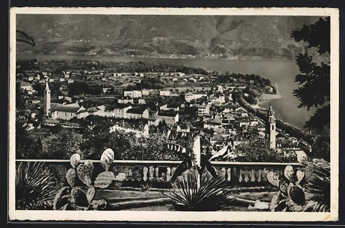 AK Ascona, Panorama mit Lago Maggiore