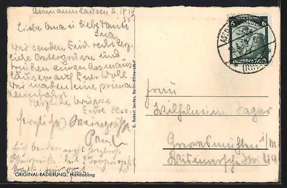 alte Ansichtskarte, gelaufen 1935, Eckknick li. oben, Bugspur re. unten, guter Zustand