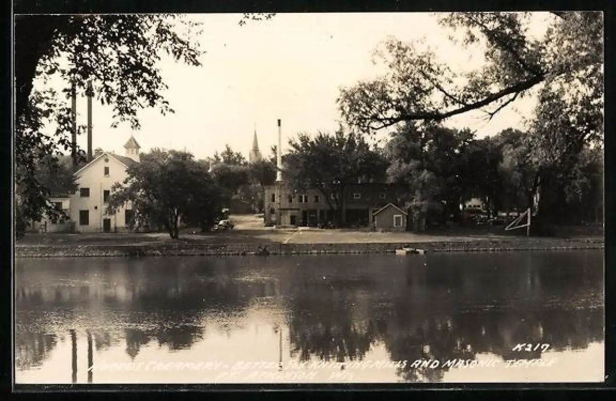AK Atkinson, WI, Hoards Creamery, Better Sox Knitting Mills and Masonic Temple