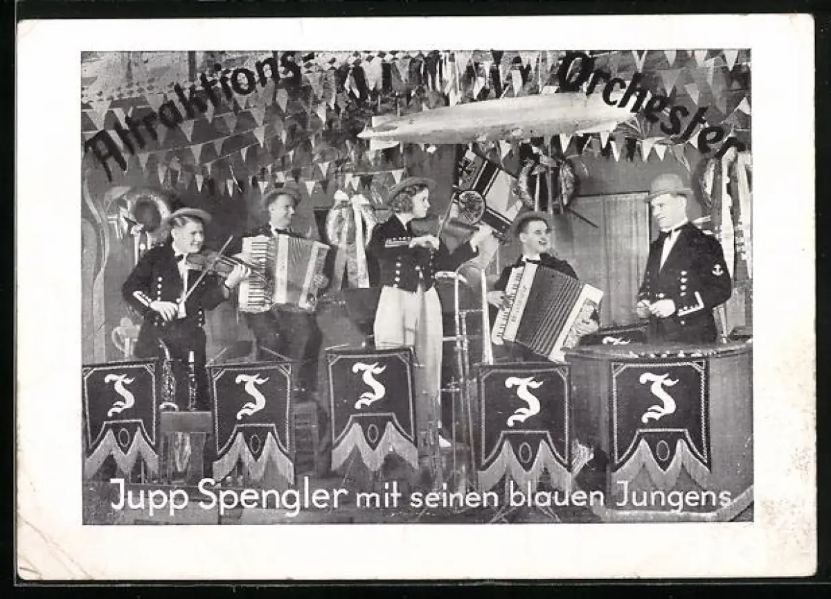 AK Attraktions Orchester Jupp Spengler und seine blauen Jungens mit Zeppelin