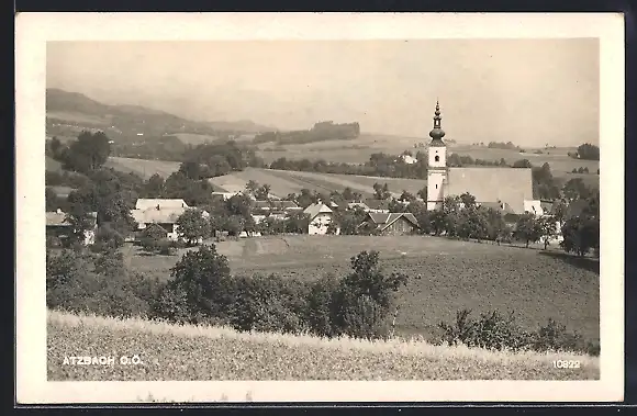 AK Atzbach /O. Ö., Ortspartie mit Kirche