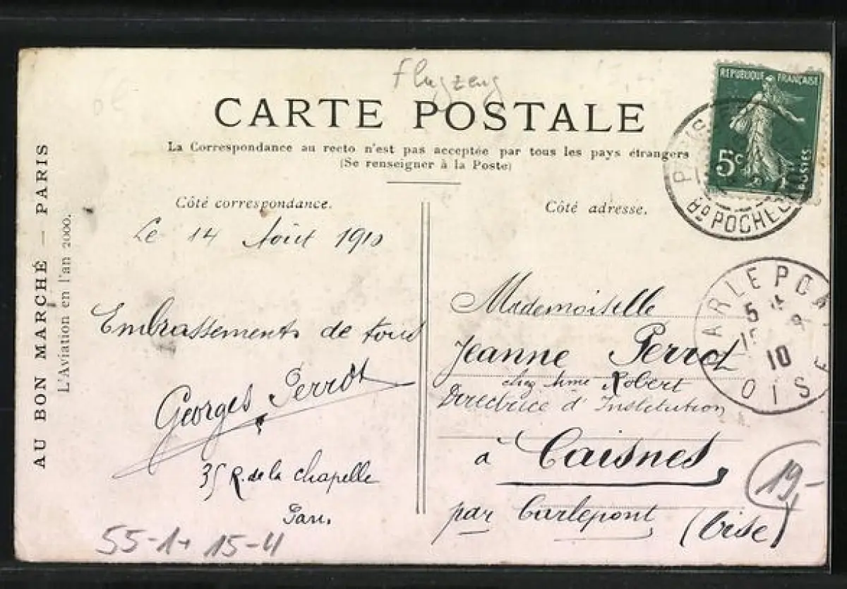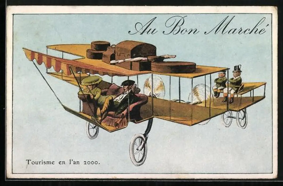 AK Au Bon Marché, Tourisme en l`an 2000, Paar verreist mit dem eigenen Flugzeug